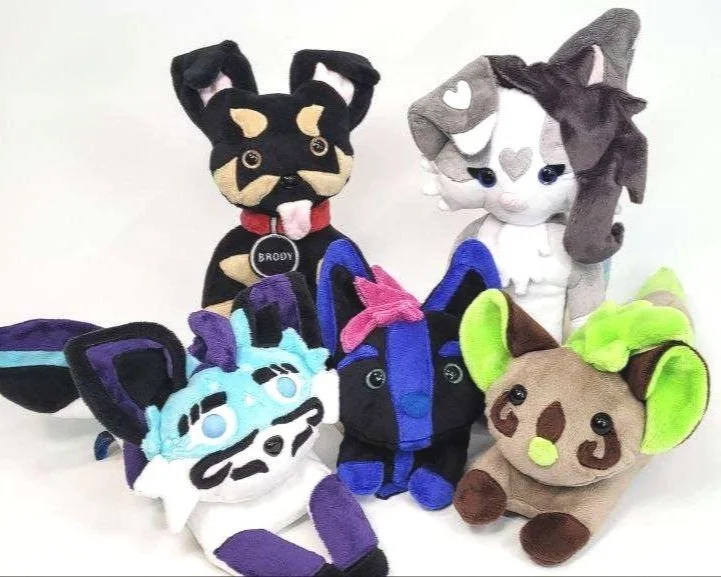 and we’ve been full-time convention vendors for 16 years now! Our booth is full of handmade plush, LGBT+ accessories, and our centerpiece product line: our custom fursona plushes in 5 styles! We also offer custom badges in a pettable plush fabric style unique to our brand.